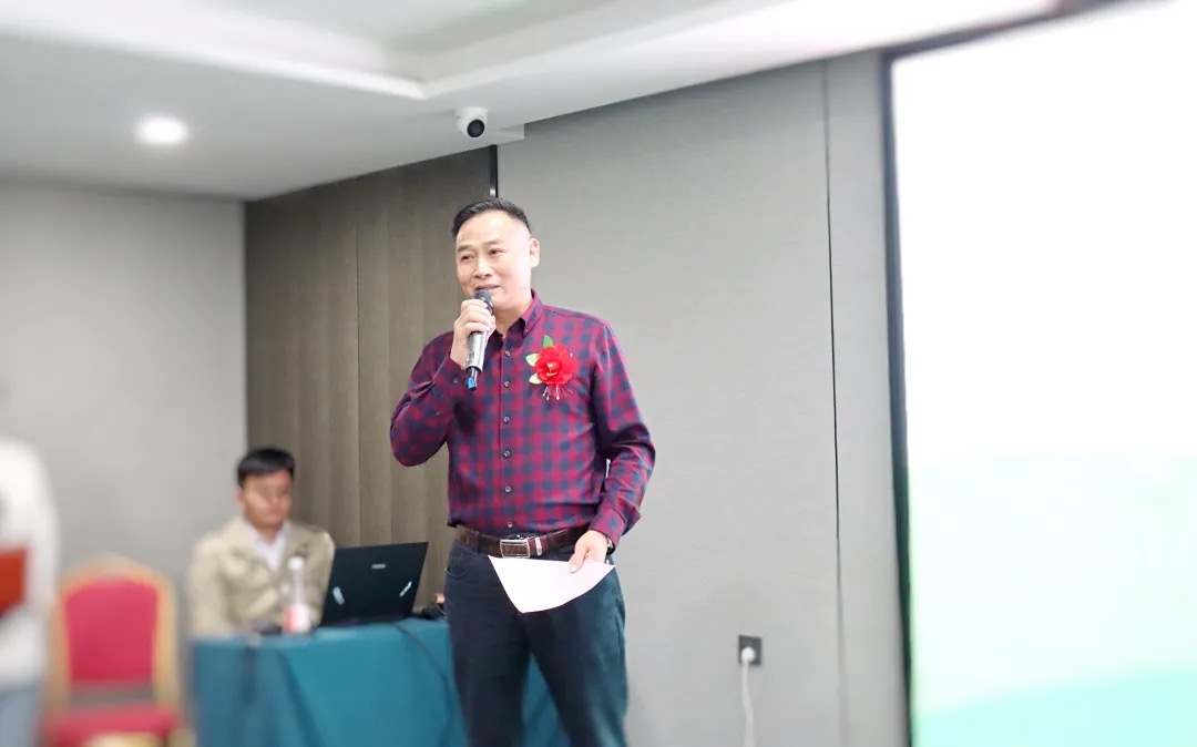 產(chǎn)品推介說明會(huì)上,河南軒炎裝飾工程有限公司董事長(zhǎng)、好思家“抗菌抗病毒漆”鄭州總代
